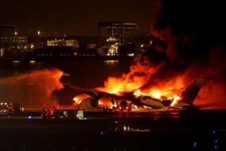 Un avión de Japan Airlines chocó contra una aeronave militar y se incendió en Tokio: hay cinco muertos