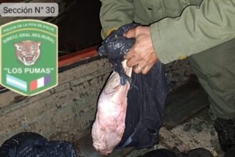 “Los Pumas” de Coronda interceptaron una embarcación que transportaba bolsas con carne vacuna desde la isla.