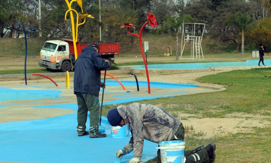 Las tareas incluyen la limpieza y reparaciones en los sistemas de bombeo. Además, se realiza desmalezamiento, corte de césped, acondicionamiento en los espacios de arena y la puesta en valor de la plaza húmeda.