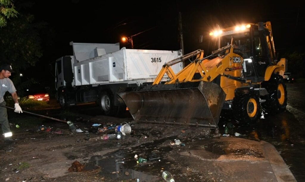 Además, se realizan tareas de limpieza y desobstrucción en distintos puntos de la ciudad para facilitar el escurrimiento del agua acumulada.