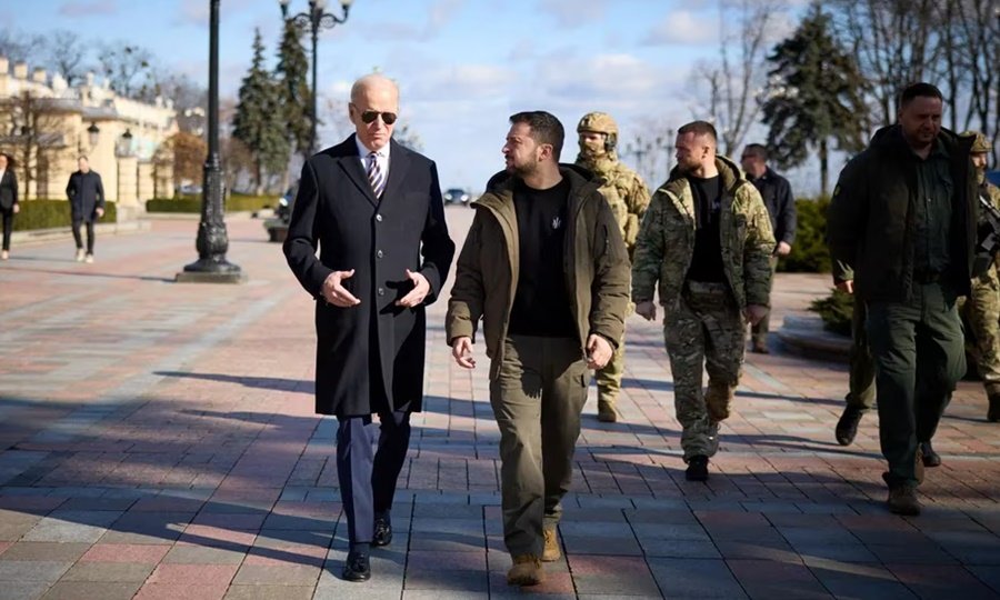 La misión de Biden con su visita a Kiev, antes de un viaje anunciado a Varsovia, era subrayar que Washington está dispuesto a mantenerse junto a Ucrania “todo el tiempo que haga falta” para repeler a las fuerzas rusas, aunque los sondeos de opinión pública apuntan a que el apoyo en Occidente a proporcionar armamento y ayuda económica directa empieza a reducirse. Para Zelenskyy, el simbolismo de tener a un presidente de Estados Unidos a su lado en tierra ucraniana poco antes del aniversario no era un detalle menor, mientras insistía a sus aliados en Estados Unidos y Europa para que proporcionen más armamento avanzado y aumenten el ritmo de las entregas.