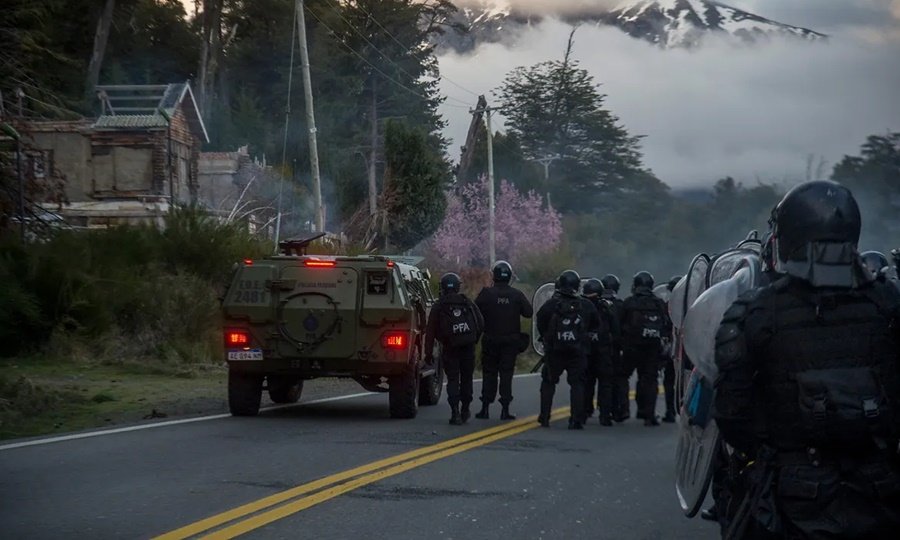 Un avión Hércules y un Fokker arribaron ayer a esta ciudad con pertrechos de seguridad y policías de fuerzas federales. Antes de las 7 de esta mañana, a través de un operativo, ya habían cortado la ruta 40 en el kilómetro 2023. Y alrededor de las 8 efectivos de la Policía Federal ingresaron al predio del exhotel Mascardi, perteneciente a Parques Nacionales y ocupado desde 2017 por la comunidad Lafken Winkul Mapu. La jueza federal Silvina Domínguez se encuentra en el lugar. Hay tres mujeres detenidas, entre ellas, la “machi”, la jefa del lugar. Actúa también la defensora de menores, según pudo confirmar LA NACION.