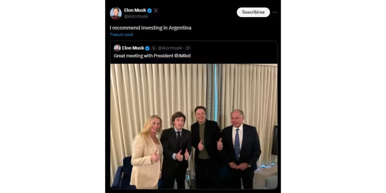 Incluso, el magnate dejó un mensaje esperanzador para posibles inversionistas para que pongan sus ojos en el país. “Recomiendo que inviertan en Argentina”, escribió a través de su cuenta de X durante este lunes.