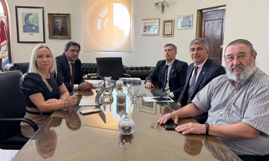 Los ministros de Gobierno e Innovación Pública, Fabián Bastia, y de Economía, Pablo Olivares, junto al secretario de Justicia, Santiago Mascheroni, mantuvieron este martes un encuentro con la titular del Ministerio Público de la Acusación (MPA), María Cecilia Vranicich.
