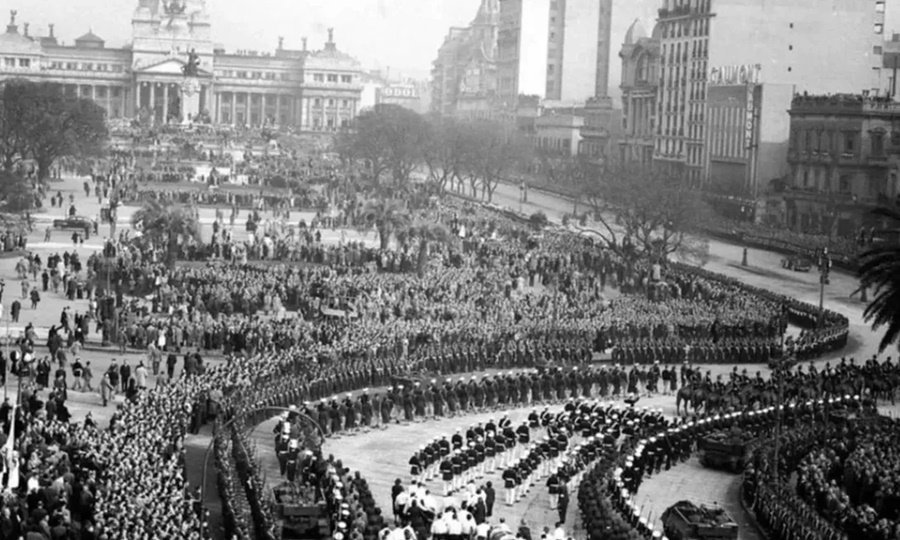 Dos millones de personas colmaron la Plaza Congreso y sus alrededores a lo largo de todo el trayecto que duró tres horas. De los balcones caían flores blancas. “Fue un espectáculo impresionante y acallado”, escribió Joseph Page en su clásica biografía de Juan Domingo Perón.
