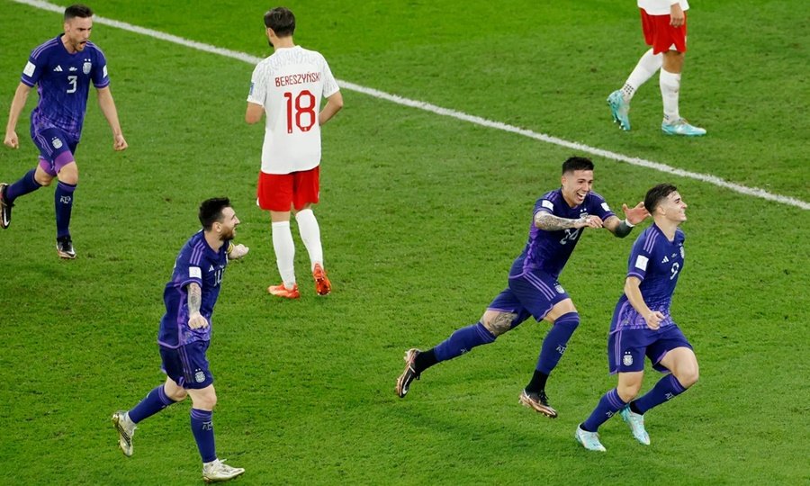 Y se dio al minuto nomás, en un buen desborde por afuera de Molina, el centro atrás (y abajo, para evitar el juego aéreo de los polacos), que fue capitalizado por Alexis MacAllister para meter la pelota en el “rincón de las ánimas” y desatar la alegría de las decenas de miles de argentinos que coparon el estadio de los contenedores.