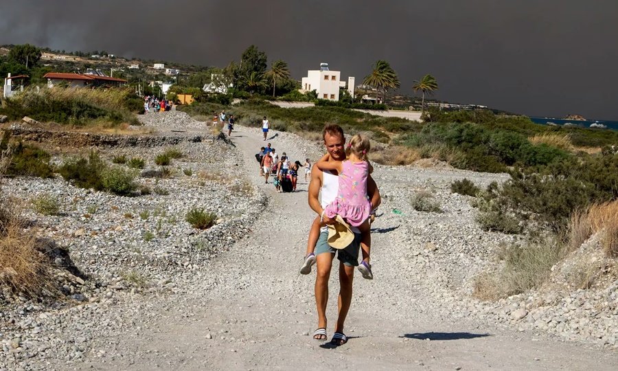 Miles de personas fueron evacuadas de sus hogares y hoteles en Rodas, Grecia, después de que los incendios forestales arrasaran grandes áreas de la isla.