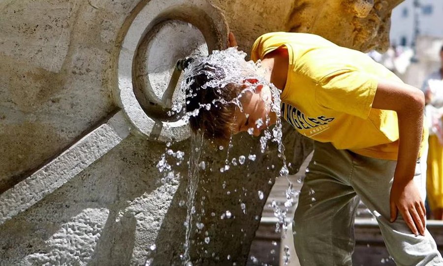 Una mujer se refresca en la Fontana della Barcaccia en la Plaza de España durante una ola de calor en toda Italia, mientras se prevé que las temperaturas sigan subiendo en los próximos días, en Roma, Italia, 17 de julio 2023.
