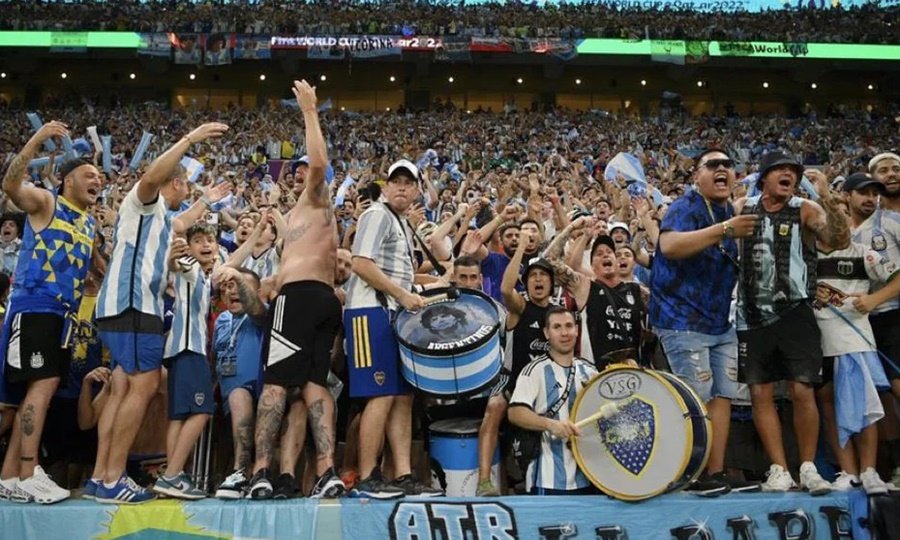 La bandera del Leopardi anunciaba la llegada de la segunda línea de La Doce. Después apareció la de Las Antenas en homenaje a su líder muerto, Aldo Baralda, lo que dejaba en claro que esa facción de la barra de Chicago se haría presente. Al rato, apenas la transmisión empezó a mostrar las tribunas, Infobae pudo detectar barras de Vélez, Huracán y Argentinos Juniors también. Y hasta el jefe de los violentos de Belgrano de Córdoba dijo presente en una imagen que lo dejó expuesto. Así, a diferencia de lo que fue la derrota en el debut frente a Arabia Saudita, el partido contra México mostró presencia de las barras bravas de nuestro país. Uno solo pudo detectar este portal que presuntamente estaba en la lista del derecho de admisión e ingresó igual. El resto, no tenía el acceso prohibido a Qatar. Contra México hubo alrededor de 90 desparramados por todo el estadio. Y se esperan más dueños de paravalanchas para el match clave contra Polonia. De hecho toda la primera línea de La Pandilla de Liniers salió esta mañana rumbo al país asiático. Sus integrantes posaron muy alegres en el hall de Ezeiza entre ellos Raulo Ciminelli, el jefe del grupo, quién también posee derecho de admisión y se verá si estará o no presente. Porque lo de un Mundial libre de barras fue un buen slogan que quedó en eso.