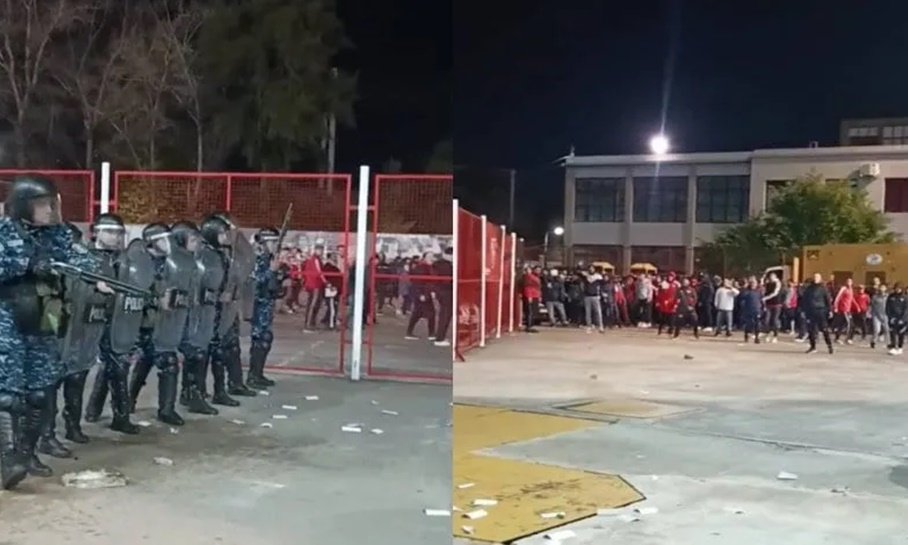 Una vez consumada la derrota ante Boca, los hinchas de Independiente se agruparon en el playón de la tribuna Erico a cantar contra los dirigentes y los jugadores, pero rápidamente recibieron disparos con balas de goma por parte de los policías que se encontraban en ese sector.