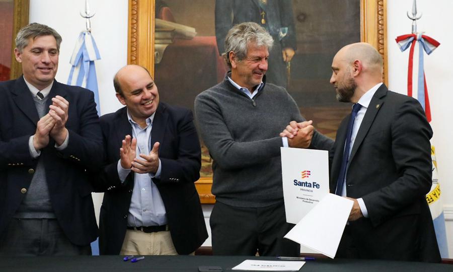 La firma del convenio se realizó en el Salón Blanco de la Municipalidad de Esperanza y del acto participaron los ministros de Desarrollo Productivo, Gustavo Puccini; y de Economía, Pablo Olivares; el secretario de Planeamiento y Gestión para el Desarrollo Productivo y de la Bioeconomía de la Nación, Juan Alberto Pazo; y el intendente de la ciudad de Esperanza, Rodrigo Müller, entre otros.