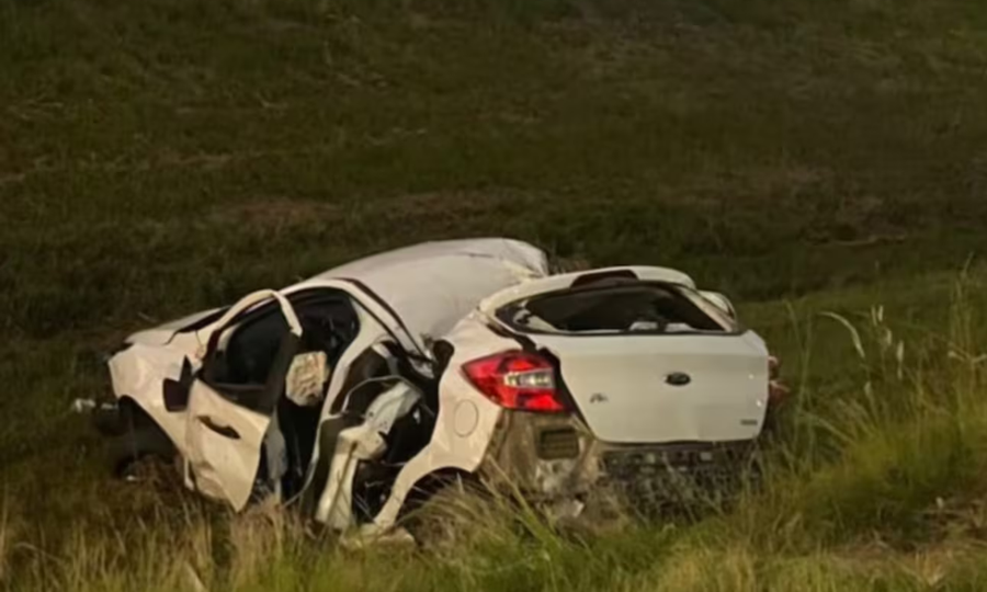 El auto quedó cerca de la zanja con el techo hundido y varias de sus partes destrozadas. A causa de los golpes, las puertas laterales fueron bloqueadas, lo que dificultó el trabajo del servicio de Bomberos para el rescate de los cuerpos.