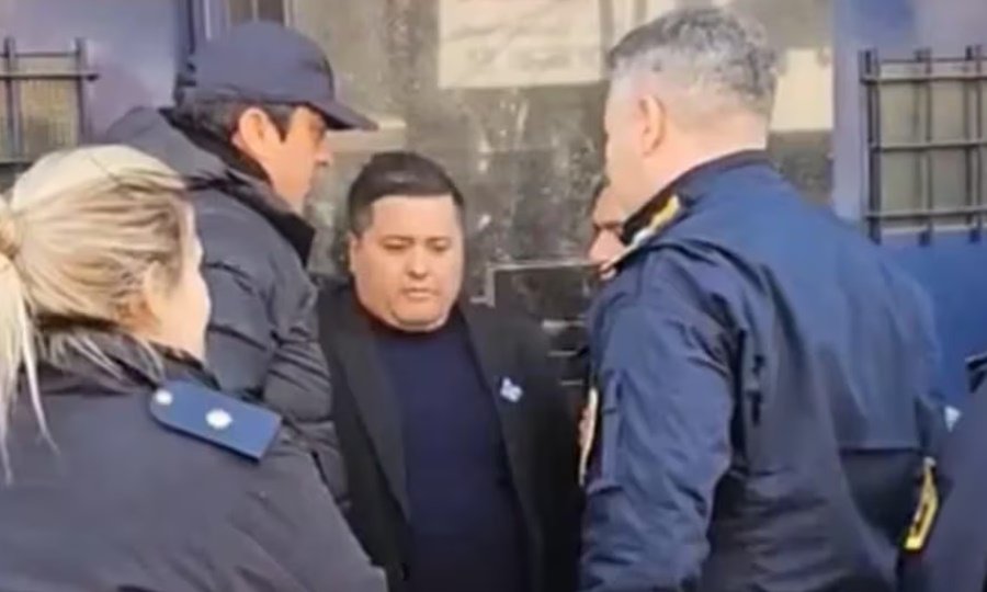 En un video registrado por una periodista del diario El1 de La Matanza, se puede observar el momento en que el concejal es apresado fuera del recinto ubicado en Hipólito Yrigoyen al 2500. Rodeado por policías, el presidente de “El Verde” mira un papel que sostiene en la mano mientras mastica chicle. Los agentes parecen explicarle lo que sucede y lo convencen de dirigirse a un patrullero estacionado en la esquina, a unos 50 metros del edificio.