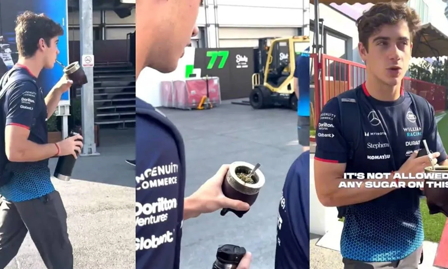 Franco Colapinto correrá la segunda carrera en Fórmula 1 de su vida y lo hará en un circuito completamente nuevo para él. Será este fin de semana en el Gran Premio de Azerbaiyán, entre el viernes 13 y el domingo 15 de septiembre. Un día antes de subirse nuevamente al Williams #43, el piloto oriundo de Pilar fue grabado llegando al paddock tomando mate y con el termo bajo el brazo.