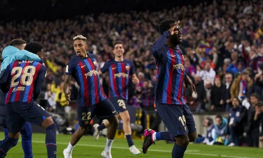 El primer tiempo tanto Barcelona como Real Madrid brindaron un gran espectáculo. Ambos equipos se atacaron, pero fue el conjunto Culé el que tuvo las mas claras, convirtiendo a Thibaut Courtois, arquero de la visita, en una de las figuras. A pesar del tener las llegadas más peligrosas, a los 9 minutos de la etapa inicial el Real Madrid se puso en ventaja. Vinicius Jr armó una jugada individual, entró al área por la izquierda y envió un centro. El defensor del Barcelona, Ronald Araújo, metió la cabeza con la intención de despejar y mandó la pelota adentro de su propio arco.
