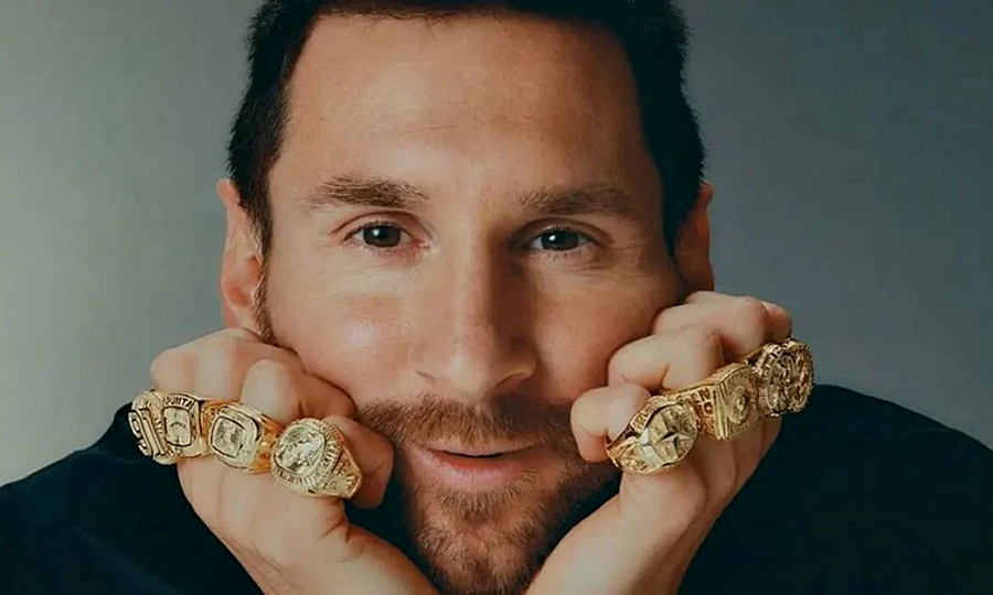 Lionel Messi volvió a consagrarse como el gran ganador del Balón de Oro y la marca que lo viste (Adidas) decidió hacerle un homenaje especial, con un guiño a la NBA. Es que la firma alemana, que representa al crack argentino, le obsequió ocho anillos personalizados.