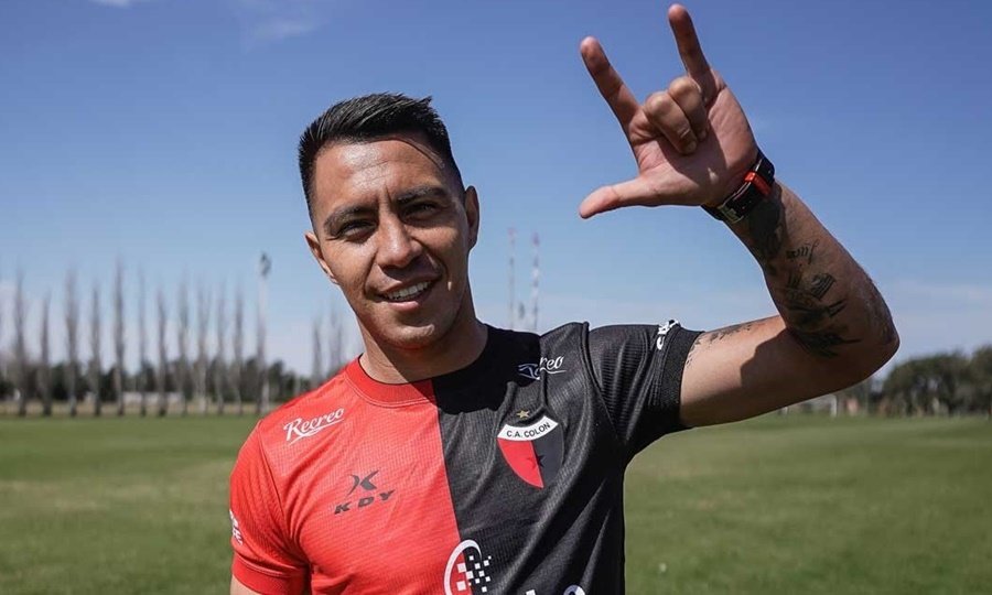 Tras sellar el vínculo con la institución, el guaraní se acopló a los trabajos físicos y posó para las cámaras con su nueva camiseta, la rojinegra de Colón.