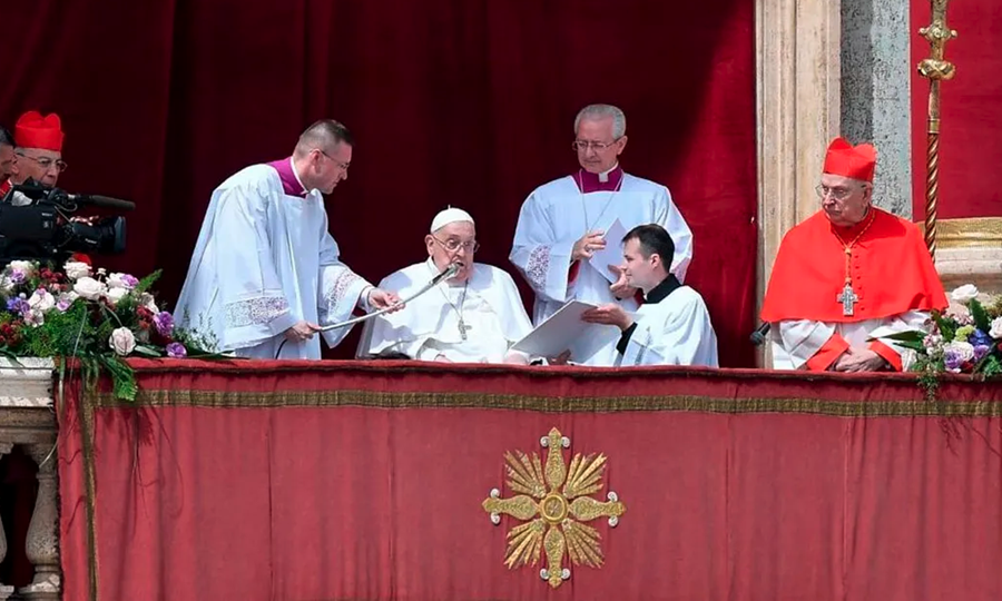El papa realizó este domingo un llamamiento a todas las partes para que «cese el fuego en Gaza, que se liberen los rehenes y se preste ayuda a la gente», así como se frene «la carrera al rearme», en el mensaje de la Pascua, que fue leído por el maestro de ceremonias, Diego Ravelli, debido a que el pontífice se sigue recuperando de su infección respiratoria.