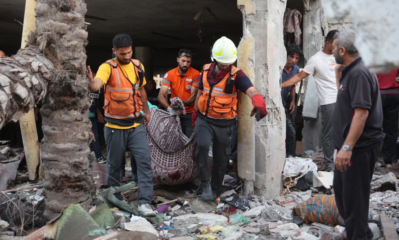 Tres misiles impactaron la escuela y la mezquita que se encontraba en su interior. Alrededor de 6.000 personas se refugiaban en el lugar sostuvo Mahmoud Bassal, portavoz del equipo de respuesta inmediata de Defensa Civil de Hamas.