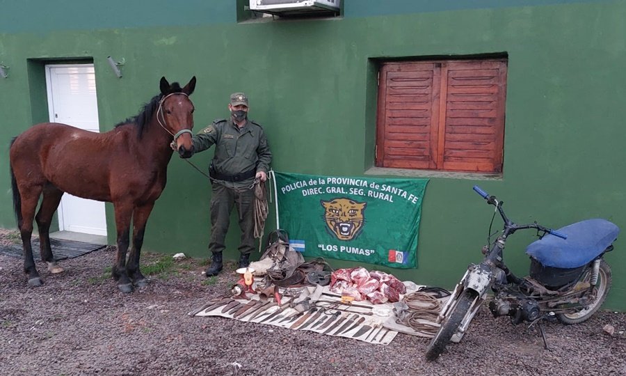 A raíz de una denuncia radicada el día 27 de Julio del corriente año, por un Productor Ganadero, de la zona, a quien le habrían faenado un animal vacuno; personal del puesto Fijo de Florencia, dearduas tareas investigativas;se anotician que un masculino se trasladaba en una motocicleta 110 c/cen la que transportabauna bolsablanca grande, conteniendo en el interior aparentemente cortes de carne, dejándola en el domicilio de un vecino de la zona, por lo que inmediatamente, la prevención actuante, teniendo en cuenta los datos aportados, se hacen presente en el domicilio de un Señor mayor de edad, a quien se lo interioriza de la presencia policial, y con previa autorización proceden a realizar requisa domiciliaria, lográndoseel secuestropreventivo deuna bolsa, la cual contenía en su interior, setenta kilogramos aproximadamente de cortes de carne vacuna, no pudiendo el sujeto acreditar su procedencia; aduciendo que se habría hecho presente en su vivienda,una persona a quien él conoce con el apodo de “Chango”, pidiéndole que le guardara una bolsa en el freezer, desconociendo lo que contenía en el interior; por lo que la prevención policial secuestró los cortes cárnicos para ser analizado por un Médico Veterinario, perteneciente a ASSAL, quién aconsejó su desnaturalización, por no ser apta para consumo humano, ya que se trataría de una faena no segura; llevando a caboórdenes impartidas por la Magistratura a cargo, se procedió a realizar orden de allanamiento en el domicilio de un ciudadano de 38 años de edad, conocido con el alias de” Chango”, arrojando resultados positivos, procediendo al Secuestro preventivo de un animal equino, Una motocicleta 110 c.c, marca Zanella, entre varios elementos de interés para la causa; todo en presencia de testigos y con los recaudos necesarios y la colaboración del personal de la Seccion Nº 9 de Villa Ocampo; finalizado el allanamiento se dio conocimiento al Señor Fiscal a cargo de la causa, quien dispuso que se notifique al sujeto de sus derechos y del delito de “Abigeato”se lo traslade hasta sede policial, para continuar con los trámites de rigor, secuestrando todos los elementosde interés para la causa a fin de esclarecer el hecho. Se prosiguen con diligencias. Interviene Unidad Fiscal de la Ciudad de Las Toscas. –
