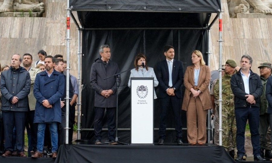 La Anmac y el Servicio Penitenciario Federal pasaron a la órbita del Ministerio La ministra de Seguridad, Patricia Bullrich, anunció este lunes en un acto en Rosario que pondrá en marcha la Ley de Seguridad Interior para permitir el apoyo de las Fuerzas Armadas contra el delito en la ciudad. Lo hizo durante la presentación del Plan Bandera, el nombre designado para nombrar un conjunto de medidas dispuestas por la provincia y Nación para la prevención y el combate del delito organizado.En ese marco, Bullrich dijo que a Rosario llegarán agentes del grupo motorizado “Linces” de Gendarmería Nacional, y que pondrá en marcha un programa de detección de correos privados y encomiendas para interceptar drogas. Y un programa de “reducción de armas”, puesto que la Anmac ha pasado a la órbita del Ministerio de Seguridad de la Nación.“Vamos a cambiar el artículo 34 del Código Penal para que la legítima defensa del Código Penal no sea la tradicional, sino reforzada para los miembros de las fuerzas de Seguridad que en muchos casos están detenidos de manera injusta por el solo hecho de haber llevado adelante la tarea que el Estado les encomienda”, dijo Bullrich.La ministra Bullrich junto a Pullaro y Javkin este lunes en Rosario (Ana Isla/Rosario3)Otras medidas anunciadas por la ministra son controles sobre los precursores químicos; un programa de denuncias anónimas del Ministerio de Seguridad de la Nación “para trabajar en conjunto para la destrucción de los búnkeres y lugares de venta”.“Vamos a tener un grupo elite de investigadores de las cuatro fuerzas federales” para llevar a cabo pesquisas de “calidad”, indicó Bullrich. Y anunció la futura implementación de un émulo de la ley estadounidense llamada RICO, que apunta a golpear al delito organizado.Bullrich también anunció que el Servicio Penitenciario Federal pasará a la órbita de Seguridad y dejará de depender del Ministerio de Justicia. “Estamos trabajando para tener un programa estricto de presos de alta peligrosidad”, dijo. Y mencionó la implementación de inhibidores y la pronta puesta en operatividad de la “cárcel federal de Coronda”, que a más de 8 años del comienzo de su construcción aún no fue inaugurada.“Los delincuentes van a estar aislados», prometió la ministra.Fuerzas federales en Rosario este lunes, escuchando a la ministra Bullrich (Ana Isla/Rosario3)Previo a ello, el intendente Pablo Javkin dijo: “Rosario hoy recibe lo que reclamábamos, un acto de justicia para que la gente buena pueda transitarla en paz”.A renglón seguido, el gobernador Maximiliano Pullaro saludó a las fuerzas de seguridad federales y provinciales; dijo que su gestión al frente del Ministerio de Seguridad trabajó en forma articulada con Nación y logró “golpes certeros” al delito. “Había una determinación política”, dijo. Y aseguró que en los últimos cuatro años a Santa Fe “se la abandonó”.Fuerzas federales en Rosario este lunes, escuchando a la ministra Bullrich (Ana Isla/Rosario3)“Vamos a mejorar de a poco y de manera sostenida los índices de inseguridad y violencia”, dijo Pullaro sobre el trabajo coordinado con Nación.
