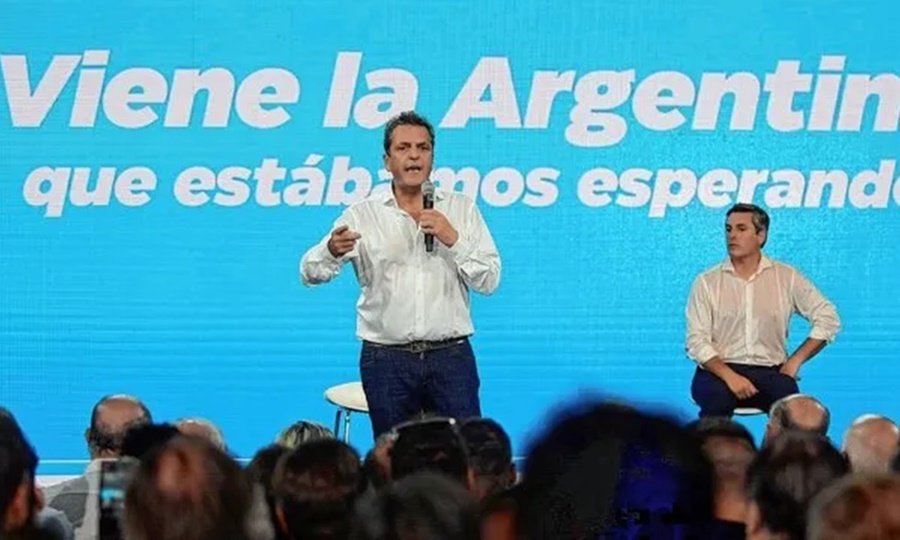 El ministro de Economía y candidato a presidente Sergio Massa en un acto en el Parque Industrial de Sauce Viejo.