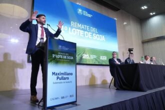 Pullaro defendió obras en rutas y pidió eliminar retenciones en el remate de soja en Rosario