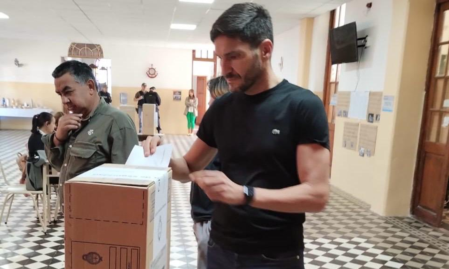 El gobernador electo de Santa Fe, Maximiliano Pullaro, votó esta mañana en la Escuela Domingo F. Sarmiento de su Hughes natal.