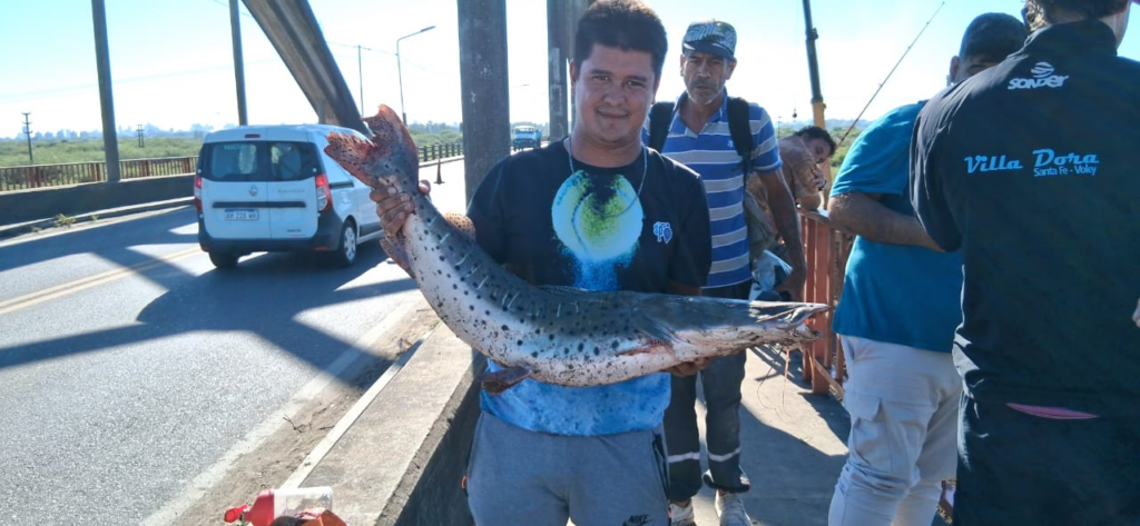Todo comenzó con la viralización de un video protagonizado por un joven pescador que logró extraer un ejemplar de poco más de nueve kilos. La imagen del pez rápidamente recorrió redes sociales y reavivó el interés por la pesca en este tradicional punto que conecta Santa Fe con Santo Tomé.
