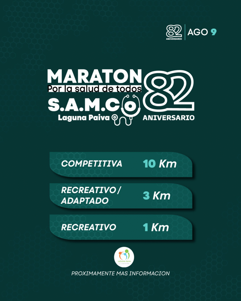 Laguna Paiva se prepara para una jornada deportiva e inclusiva con la realización de la Maratón por la Salud de Todos, una iniciativa organizada en el marco del 82° aniversario del S.A.M.Co Laguna Paiva. La actividad fue anunciada oficialmente por la Municipalidad a través de sus redes sociales.