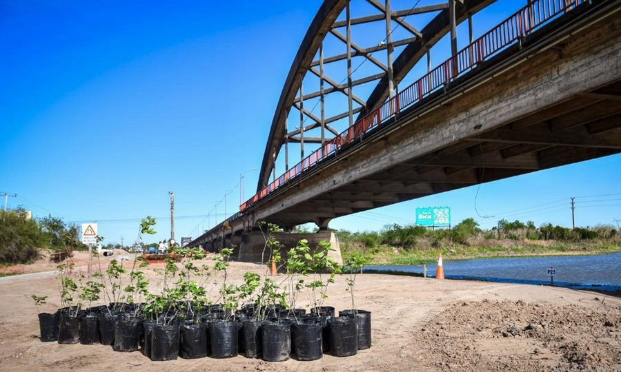 Desde el inicio del proyecto, se definió que el avance de la obra debía ir acompañado por acciones de protección de especies nativas. Por ello, se modificó la cota del acceso desde Santa Fe, lo que permitió conservar una hilera de lapachos adultos que, de otro modo, hubieran sido removidos.