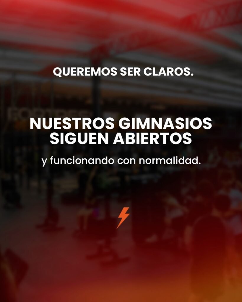 “Queremos ser claros: nuestros gimnasios siguen abiertos y funcionando con normalidad”, afirmaron desde Fortress.