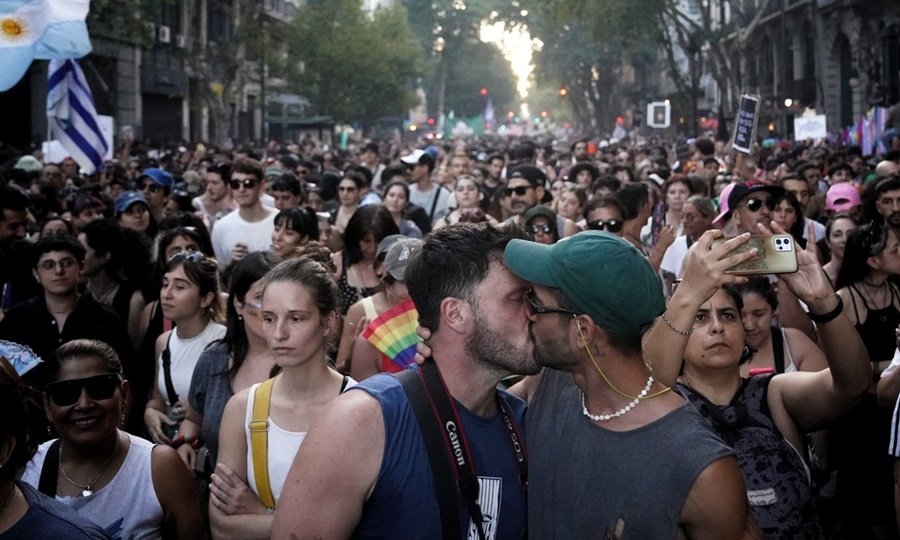Sin el colorido de las clásicas marchas del orgullo y con columnas de partidos políticos y gremios opositores -que se plegaron a la consigna «antifascista, antirracista y LGBTI+» de las organizaciones convocantes-, decenas de miles de personas salieron este sábado a las calles en repudio al discurso de Javier Milei en Davos en el que apuntó contra el feminismo y asoció la homosexualidad con la pedofilia.