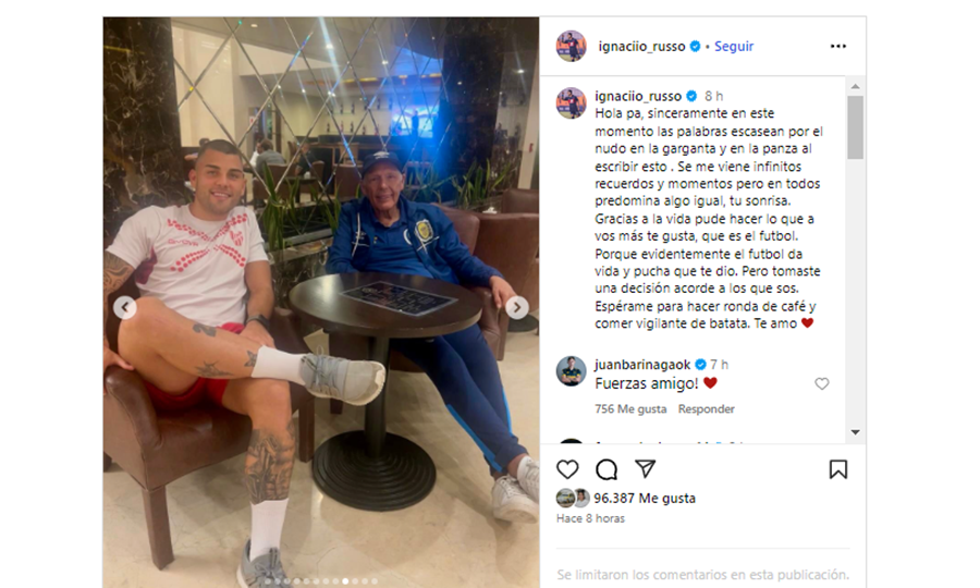 Horas después del partido, Ignacio Russo publicó en Instagram un carrusel de fotos junto a su padre a lo largo de los años. En la descripción, escribió un texto íntimo, como si hablara directamente con él: